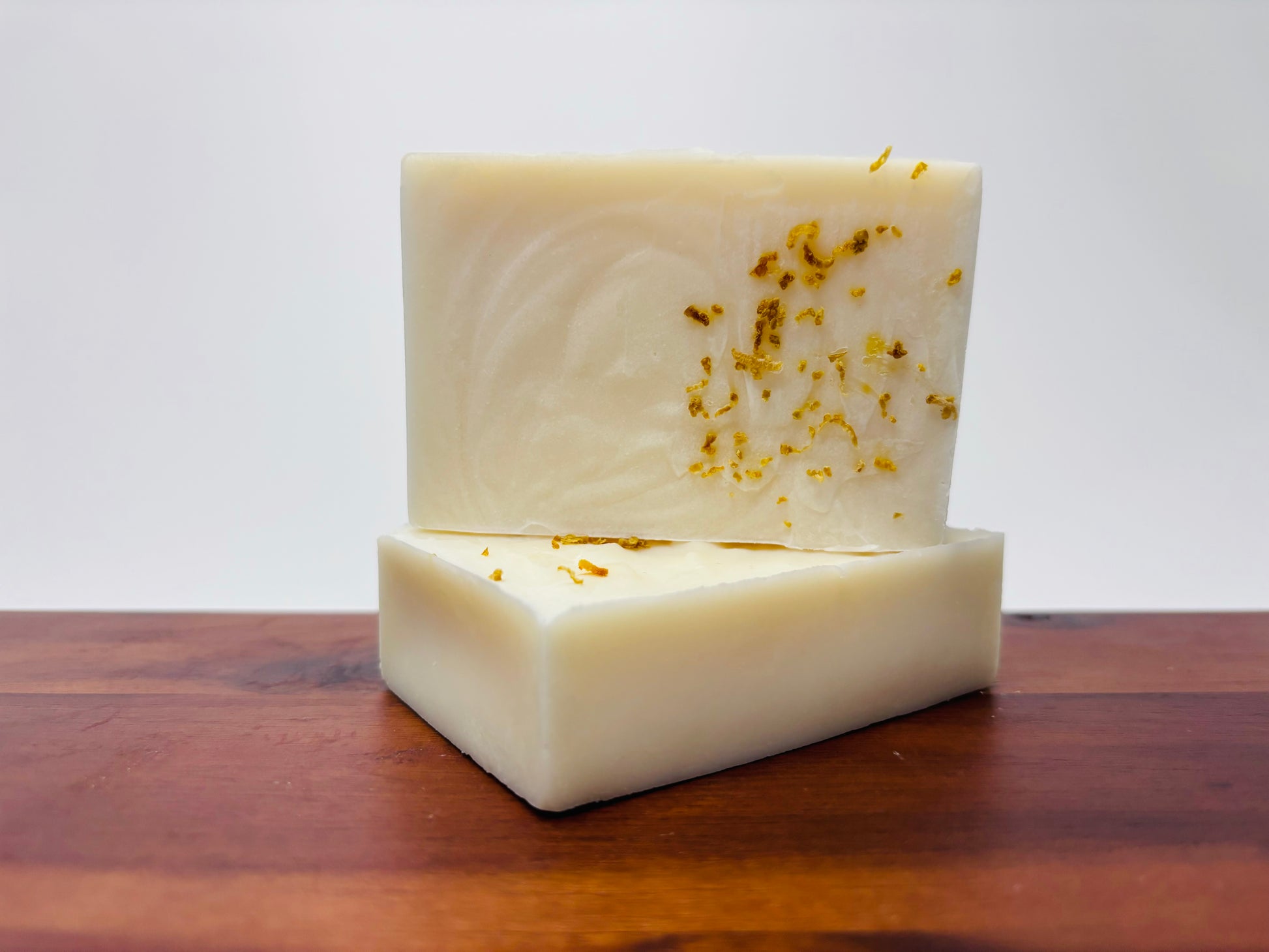 Beef tallow based soap made with organic castor oil, organic coconut oil, organic lemon essential oil, kaolin clay and light lemon zest.